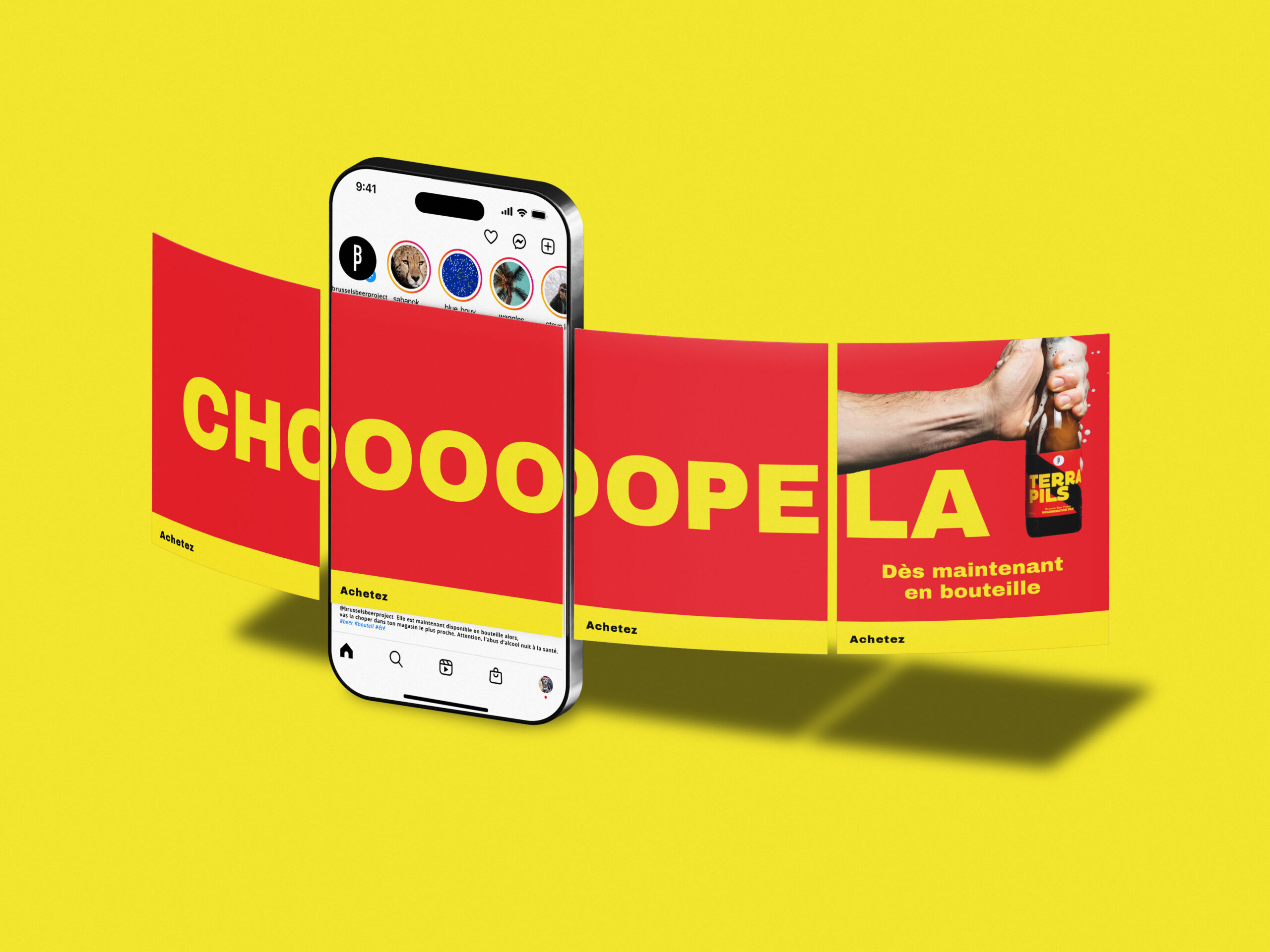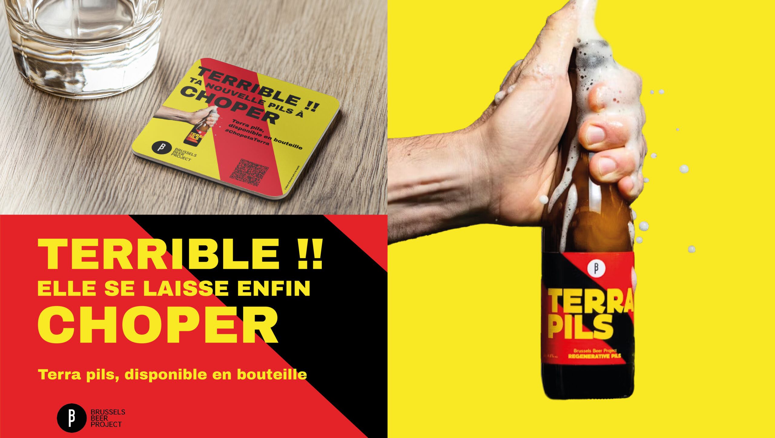 Création d’une campagne digitale et print pour Brussels Beer Project, une brasserie au caractère affirmé qui mêle design audacieux, identité forte et engagement envers des valeurs locales, durables et communautaires. Cette campagne annonçait la sortie en bouteille de la Terra Pils, jusqu’ici uniquement disponible en fût. Réalisée avec une police de caractère alternative à celle officielle, car celle-ci est sous licence.